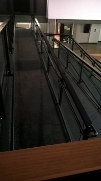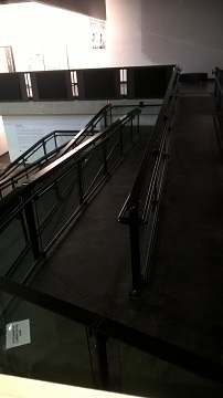 I find the ramp-stairs fascinating too. They zig-zag up and up to the mezzanine level. A few months before I first saw them, I had a dream about narrow lanes of swimming pools with glass walls in a similar arrangement to these ramps, although the floors of the pools weren’t sloping. I describe my dream in my book Sixty Nights of Dreams.