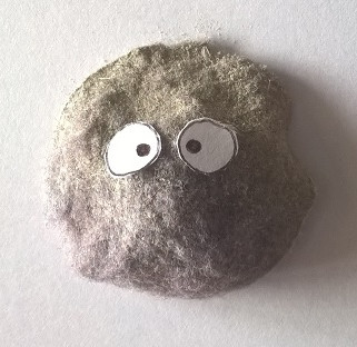 In any case, it was feed-time for my vacuum cleaner, Orca. As I guided him around his feeding grounds, I began wondering if I should draw my dust sprite with black pen or black texta. But then I realised I didn’t need to make up my mind. I could make a real dust sprite from real dust, repurposing Orca’s regurgitated stomach contents. The dust and detritus he’d sucked up from my floor whirling around the compartments of his belly were forming felted dust on his filters right before my eyes. For once I didn’t mind giving him his comfort clean as I peeled off a plump, perfectly round dust cushion from his filters and put it aside for my dust sprite project.