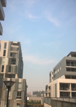 This is a photo of Sydney’s new light rail taken on a smoky day. A slogan on the tram says, PLAY IT SAFE AROUND LIGHT RAIL. Maybe this slogan should be adapted for Sydney, saying something along the lines of PLAY IT SAFE AROUND SYDNEY AIR.